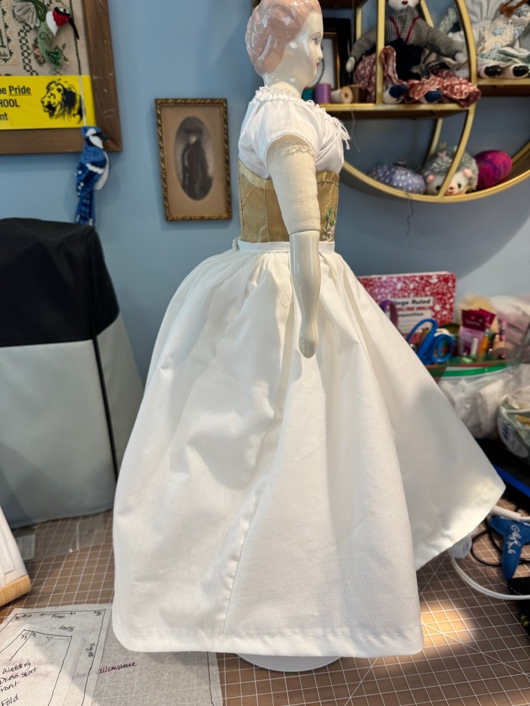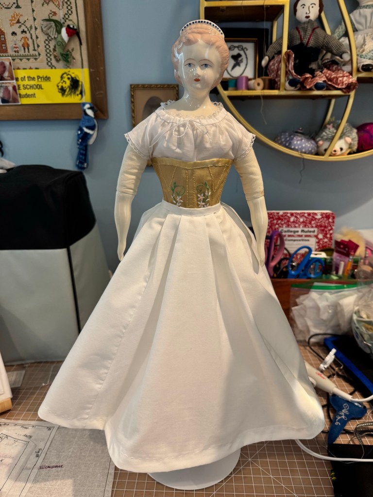 I talked myself off the ledge and I’m not making a wired bustle or cage for Julia. I really just don’t have the time and as I always remind myself, she is a doll. A beautiful doll, but a doll nonetheless.