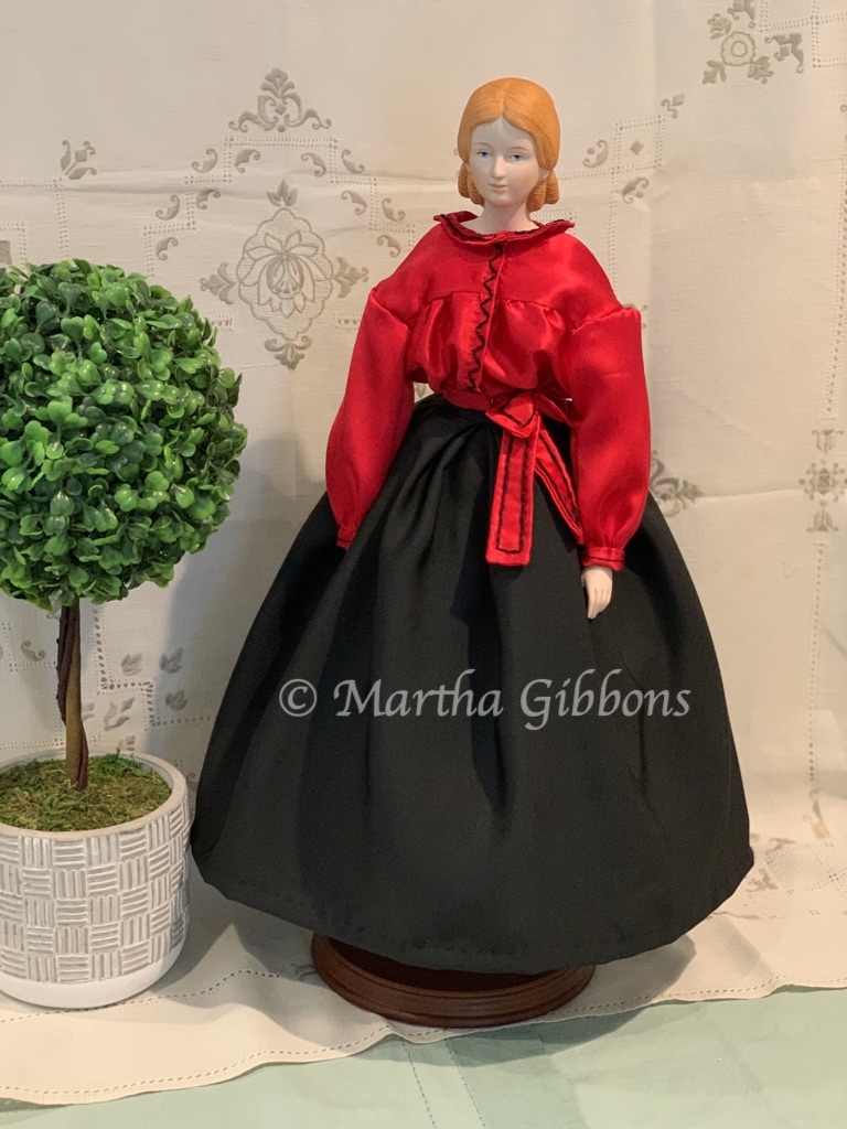 Looking at Victorian fashion plates and photos from the mid 1860s I was consistently drawn to the Garibaldi shirtwaist and skirt combination. This was a high fashion look and was sometimes paired with a bolero jacket. On a small scale I decided just the shirtwaist and blouse would be sufficient.